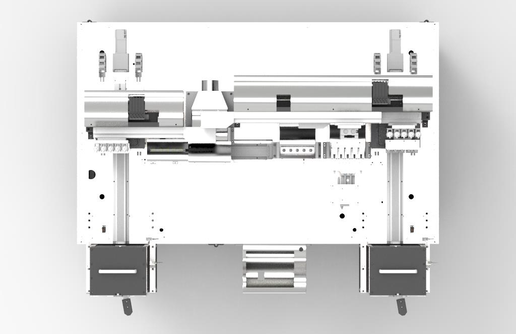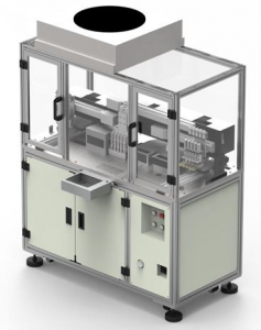 本機器設備主要應用於鏡頭除塵之設備,吸嘴至托盤位置將部品吸取後,將部品送入除塵工作站中,真段鏡頭的螺牙與上下兩面,利用毛刷與氣體,針對可移動式白點進行清潔,以提高鏡頭的潔淨度。